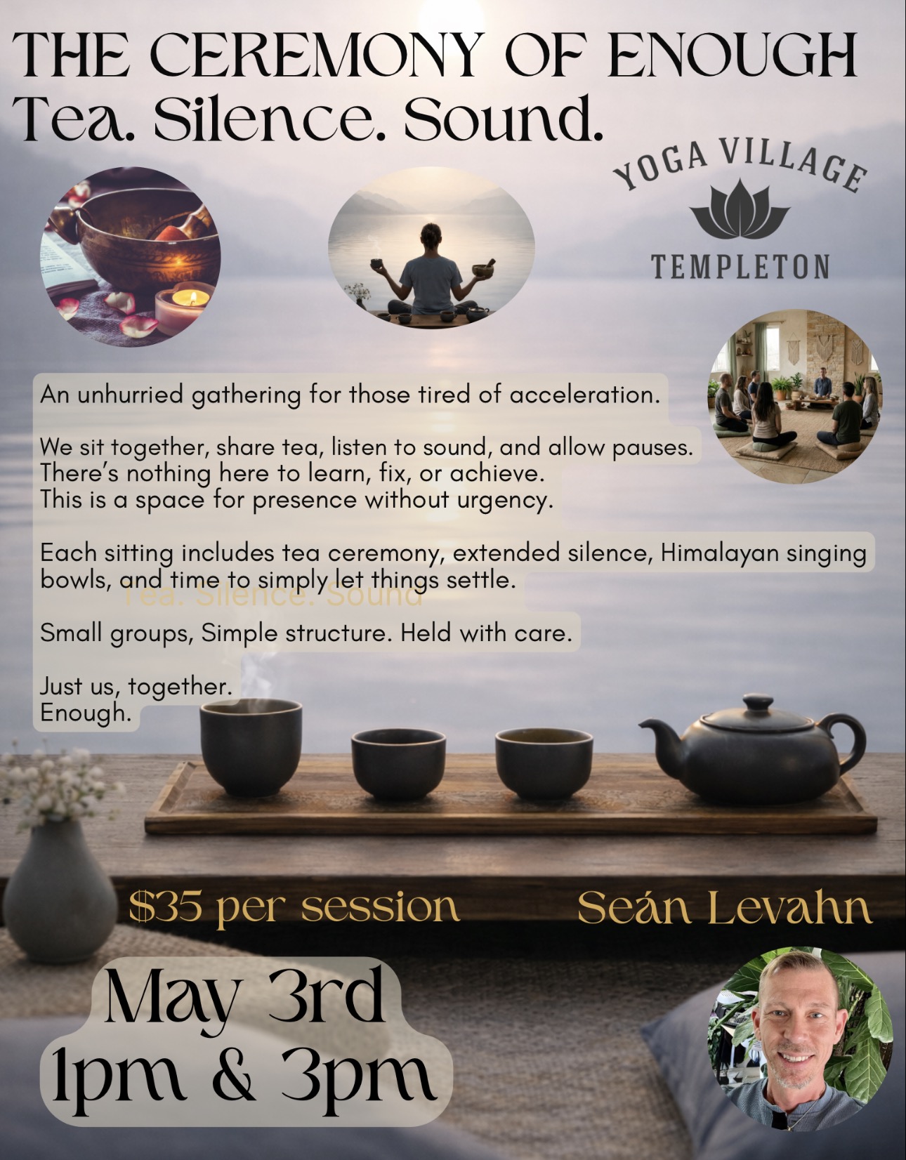 Discover a sanctuary from the rush of everyday life. Join us for an unhurried gathering where tea, sound, and silence guide us to a place of deep presence and calm.